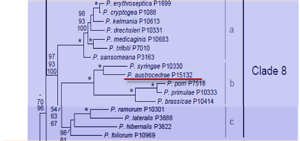 of Austrocedrus chilensis in Argentina. Phylogenetically is closely related to P. syringae in clade 8b.