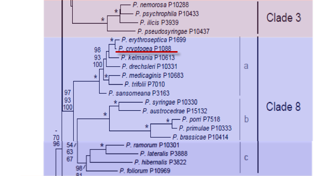 Notes: Ho and Jong (1986) considered Phytophthora cryptogea to be synonymous with Phytophthora drechsleri, Cooke et al. (2000) found the two species to be distinct based on molecular analysis, but close to Phytophthora erythroseptica.