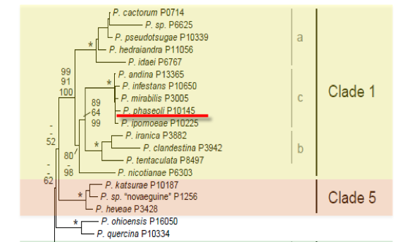 P. phaseoli is classified in group IV (Stamps et al. 1990). Morphology is shown in Figure 1. See Tables 4.2 and 4.3 in Phytophthora Diseases Worldwide (Erwin and Ribeiro 1996) for tabular keys.